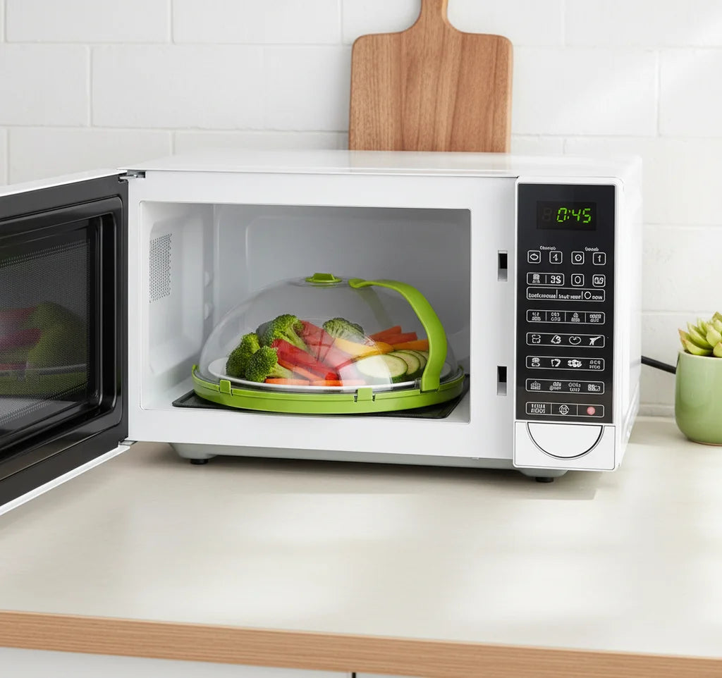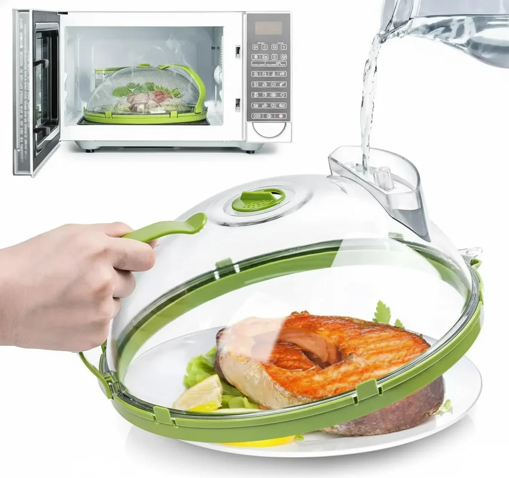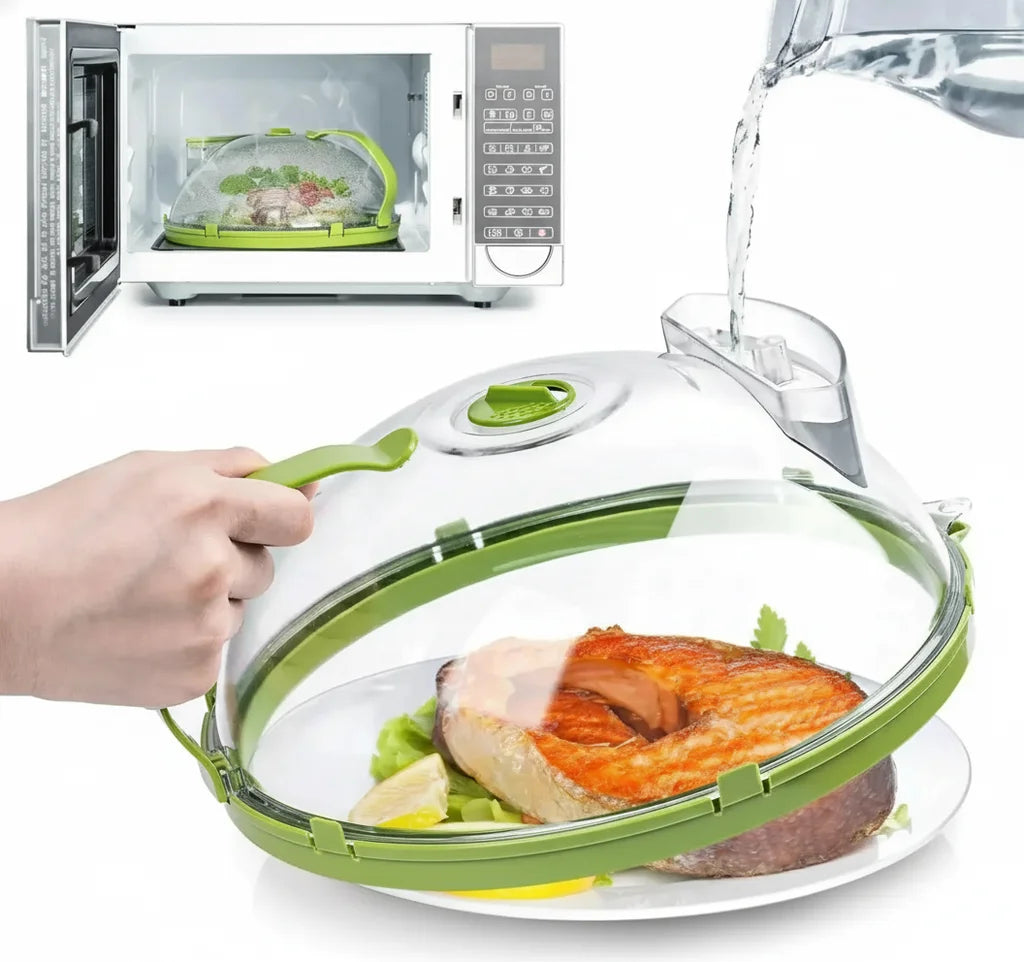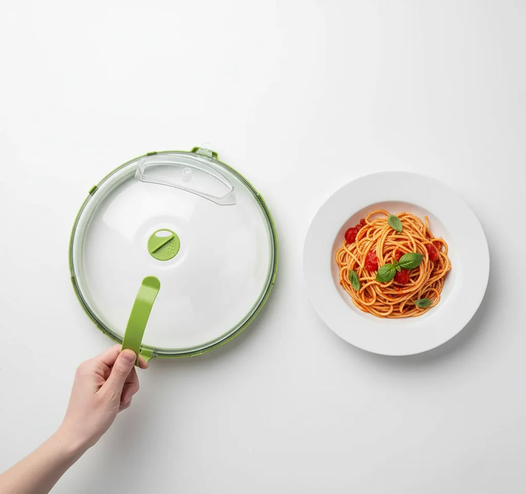 Our Microwave Master Dome combines superior splatter protection with a unique moisture-locking system. The ergonomic handle and clear view elevate your reheating, delivering consistently moist, delicious food without the usual microwave mess. It's a game-changer!
