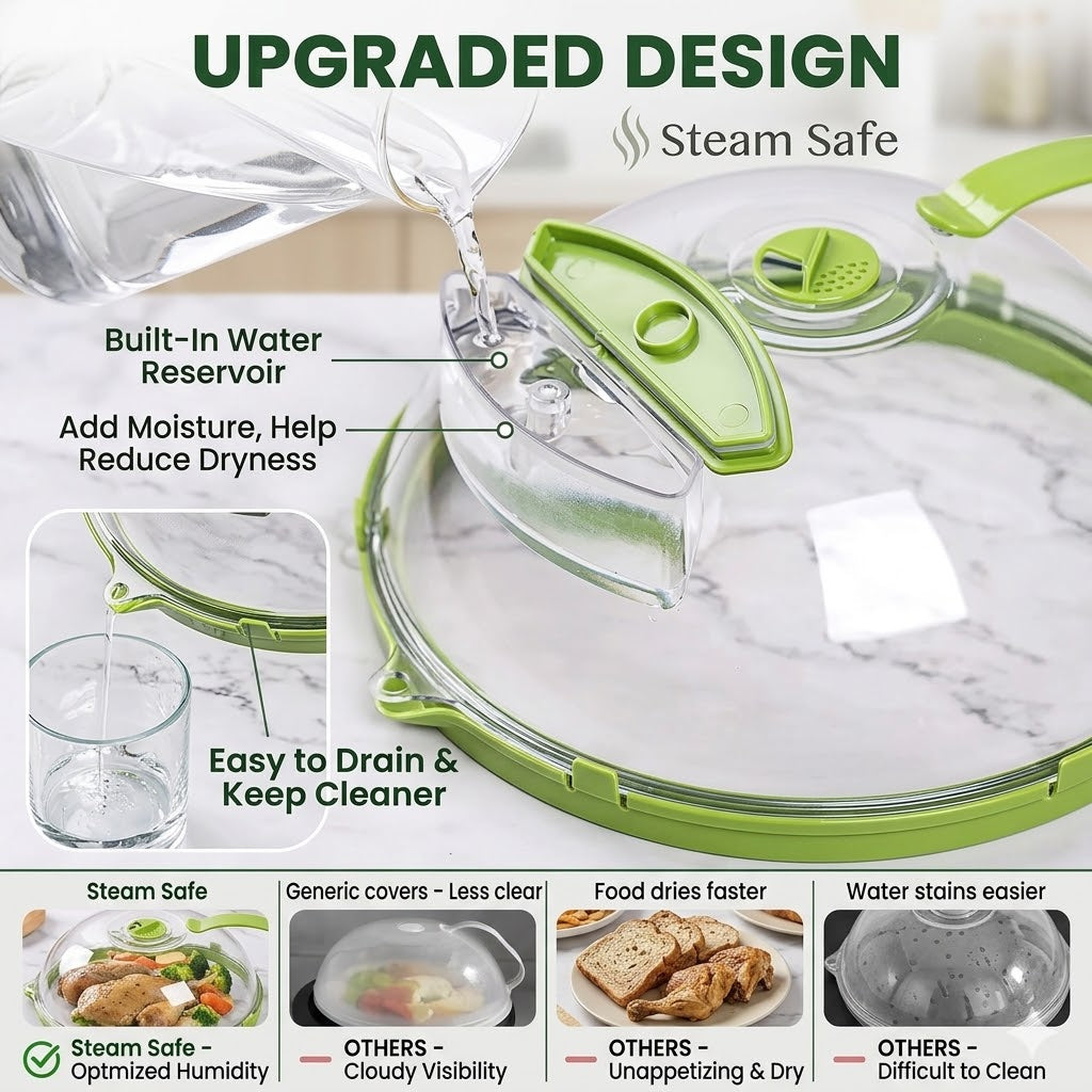 Steam Safe covers your food while reheating to help reduce splatters, keep your microwave cleaner, and make everyday heating more convenient. With a clear cover and easy-grip handle, it’s a simple upgrade for cleaner reheating.
